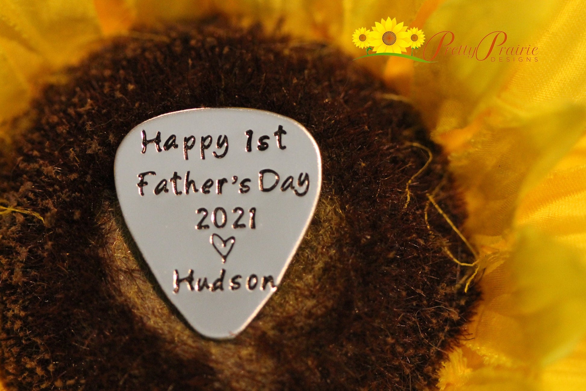 Happy 1st Father's Day Guitar Pick, Hand Stamped Pick, Father's Day, Mother's Day Gift, Music Lover, Guitarist Gift, Hand Stamped Metal Pick